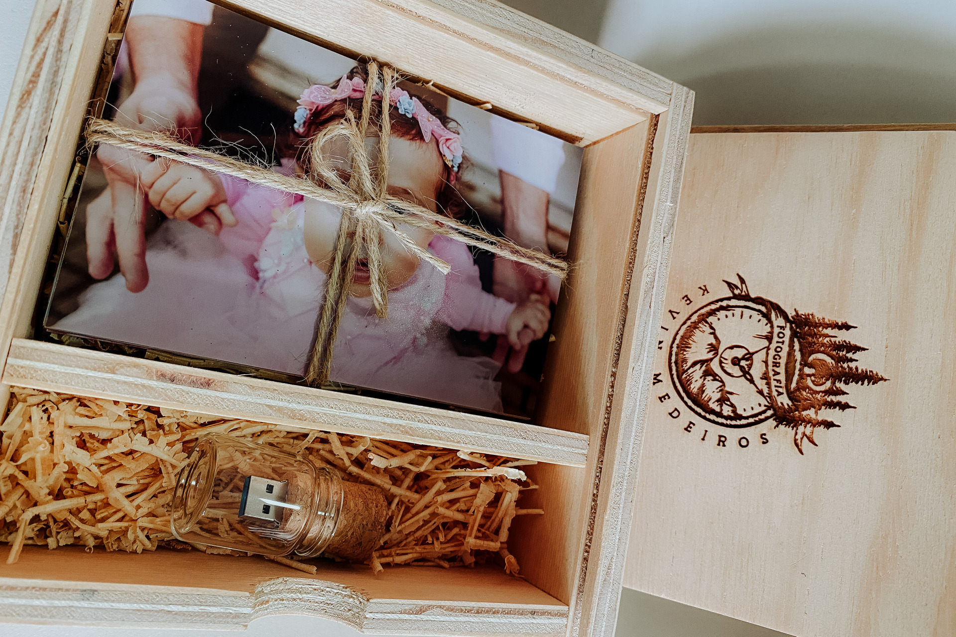 KIT CAIXA MADEIRA + PENDRIVE